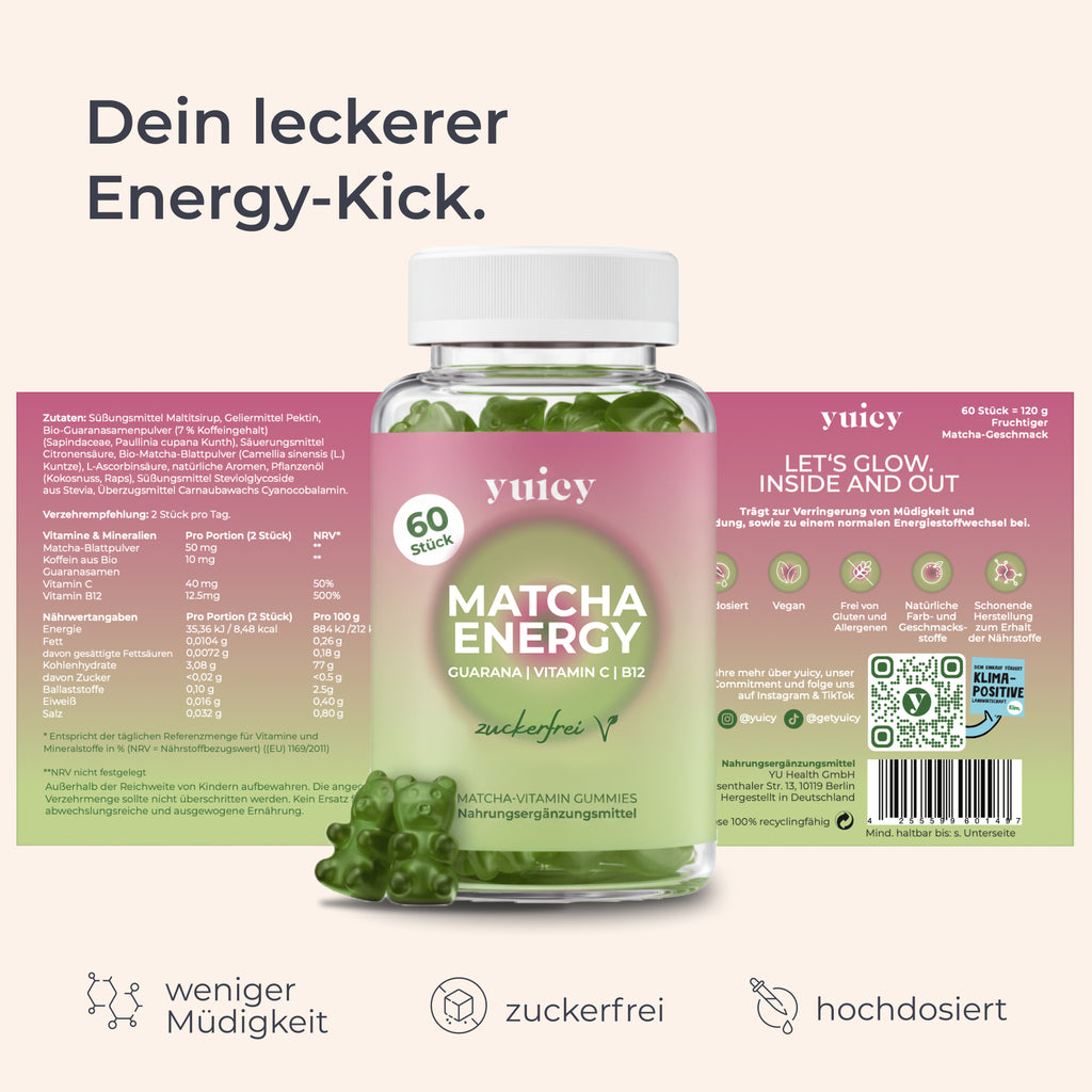 Guarana enthält natürliches Koffein, das im Körper langsamer freigesetzt wird als synthetisches. Das sorgt für einen gleichmäßigen Energieschub, steigert die Konzentration und bekämpft effektiv Müdigkeit